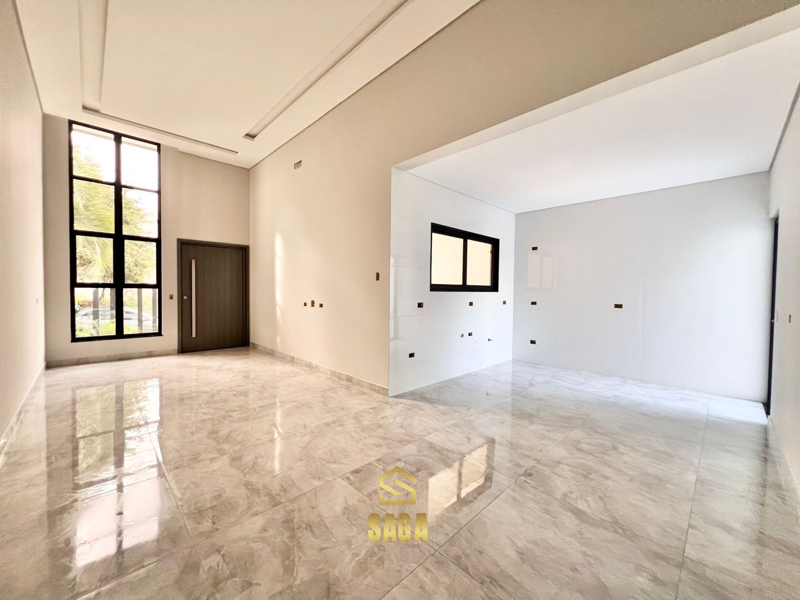 - Sala de estar e jantar integradas, com pé-direito duplo